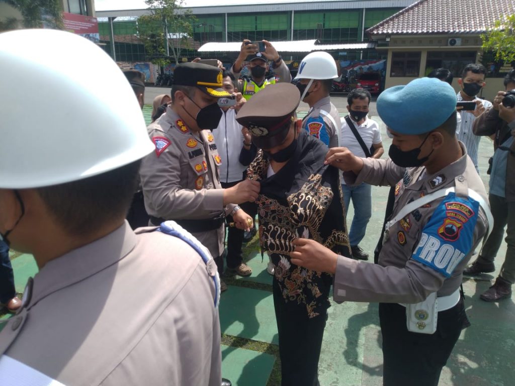 Secara simbolis Kapolres Purworejo melepas baju dinas Polri yang dikenakan AL dan menggantikan dengan baju biasa.
