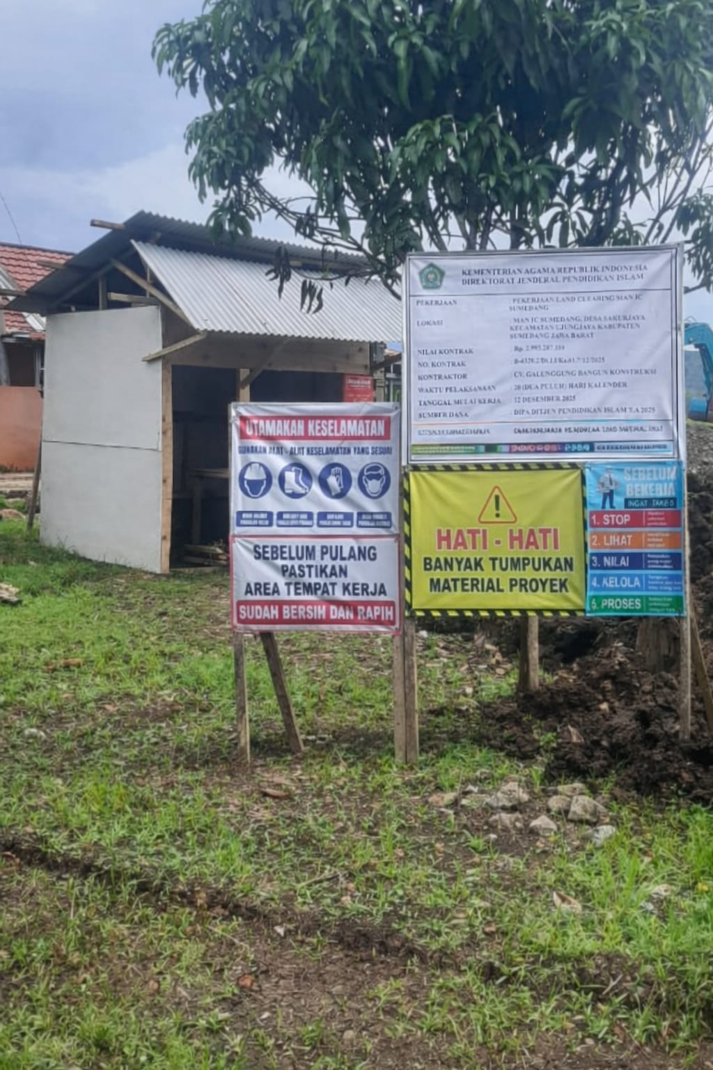 Sumedang SNP – Proyek Pembangunan MAN IC Sumedang yang dibangun pertengahan bulan Desember 2025 saat ini kondisinya sudah amburadul sesuai informasi di lapangan kondisi jalan yang dibangun sudah mulai terkelupas juga tembok yang mengelilingi lahan yang akan dibangun MAN IC Sumedang sudah mulai miring. Proyek yang disinyalir menzolimi warga perumahan yang tinggal di Lokasi, rencana akan dibangunnya MAN IC mencibir kondisi proyek yang seakan-akan proyek penghamburan-hamburan uang negara.
