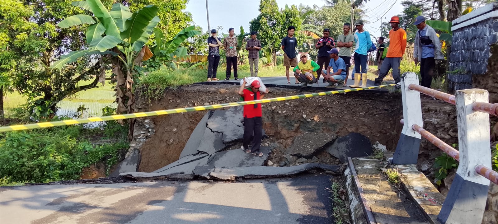 “Memang kondisi jembatan sebelumnya sudah rusak dan terkikis air. Belum ada perbaikan dari pihak terkait. Alhamdulillah saat kejadian tidak ada korban jiwa karena warga belum beraktivitas,” ujarnya.