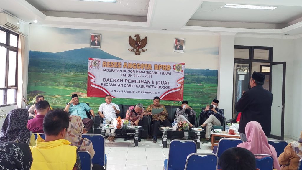 Bogor – Reses anggota DPRD Kabupaten Bogor, masa sidang ke dua tahun 2022-2023 di daerah pemilihan dua, 6 anggota dewan yang hadir dari 9 dewan yang berada di dapil dua. Kegiatan reses yang diadakan diaula Kantor Kecamatan Cariu tersebut berjalan dengan kondusif dan banyaknya usulan, Selasa (07/02).