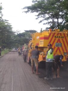 ”Untuk kondisi awal Jalan Raya Mulya Asri, sebelum dilakukan pekerjaan, ada beberapa titik jalan aspal mengalami brudul (kelupas) dan kondisi keseluruhan Jalan Raya Mulya Asri relatif baik (mulus), jalan aspal kelupas diperbaiki dengan cara aspal panas langsung dihampar di jalan berlubang tanpa dilakukan Patching terlebih dahulu? Awal pekerjaan pengaspalan dilokasi pekerjaan, jalan existing dilakukan penggalian menggunakan cold milling machine dengan panjang pekerjaan berkisar 200 M dengan tinggi sekitar 5 Cm. Selanjutnya jalan raya Mulya Asri dilakukan pelapisan aspal berkisar antara tinggi 2 cm sd 3 Cm, tanpa dilakukan penggalian jalan existing mempergunakan cmm, diduga kuat dilakukan pekerjaan awal menggali jalan Existing dengan CMM hanya sebagai formalitas dan dijadikan sebagai dokumen gambar kerja.