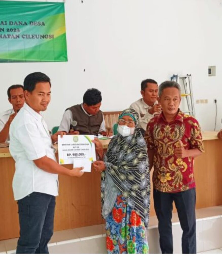 Bogor – Pemerintahan Desa (Pemdes) Limusnunggal merealisasikan Bantuan Langsung Tunai Dana Desa (BLT-DD) Tahun Anggaran 2023 Tahap I (Januari-Maret) dengan membagikannya langsung kepada 34 KPM (Keluarga Penerima Manfaat) di aula kantor Desa Limusnunggal Kecamatan Cileungsi Kabupaten Bogor Rabu. (17/5)