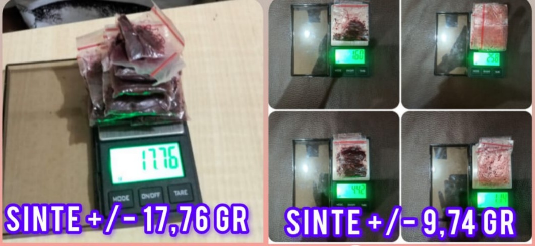 Dalam pengungkapan tersebut, polisi menyita total 27,5 gram tembakau sinte yang telah dikemas dalam puluhan paket siap edar, beserta timbangan digital, alat pengemasan, dan uang tunai. Hasil penyelidikan mengungkap, para tersangka memperoleh bahan dari luar daerah melalui transaksi daring, kemudian mengolahnya dengan cara dicampur dan disemprot cairan tertentu sebelum dikemas ulang untuk diedarkan.