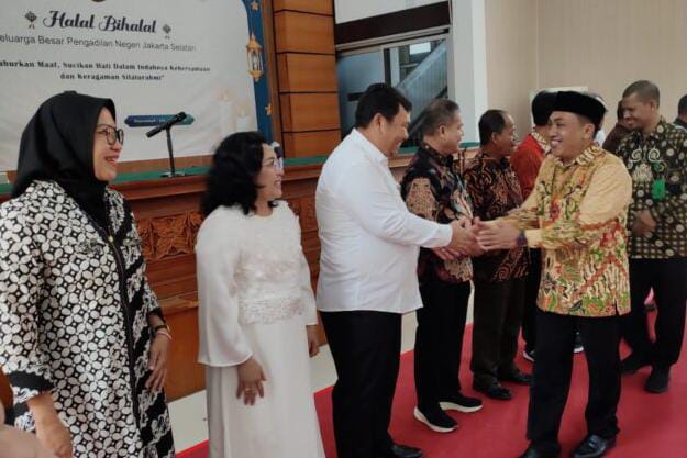 JAKARTA SNP – Pengadilan Negeri Jakarta Selatan (PN Jaksel) dibawah komando Saut Maruli Tua Pasaribu, bersama humas yang juga ketua panitia hakim Djuyamto menggelar acara halal bihalal dan silaturahmi bersama jajaran beserta wartawan di ruang sidang utama PN Jakarta Selatan, pada Kamis (25/4)